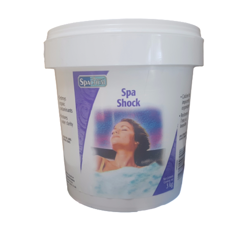 Spa Chem Spa Shock is a non chlorinating shock treatment for Hot Tubs. Spa Shock is an oxidizer and can be used with chlorine and bromine sanitizing products. It also works quickly in oxidizing many kinds of contaminants that reduce the effectiveness of your hot tub's chlorine or bromine. When used regularly, Spa Shock helps to reduce chlorine or bromine demand by removing those unfilterables. Spa Shock will not affect the water's pH level. Spa Shock will help restore water quality and give a boost to the chlorine or bromine levels.